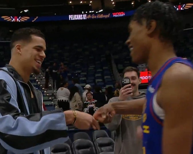 此役,前掘金球员小波特现场观战了这场比赛。